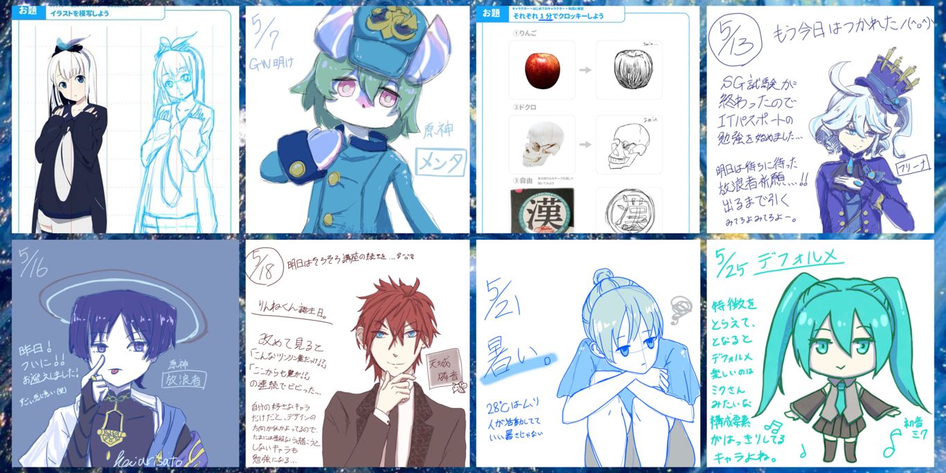 4月のお絵描き講座の進捗まとめ。