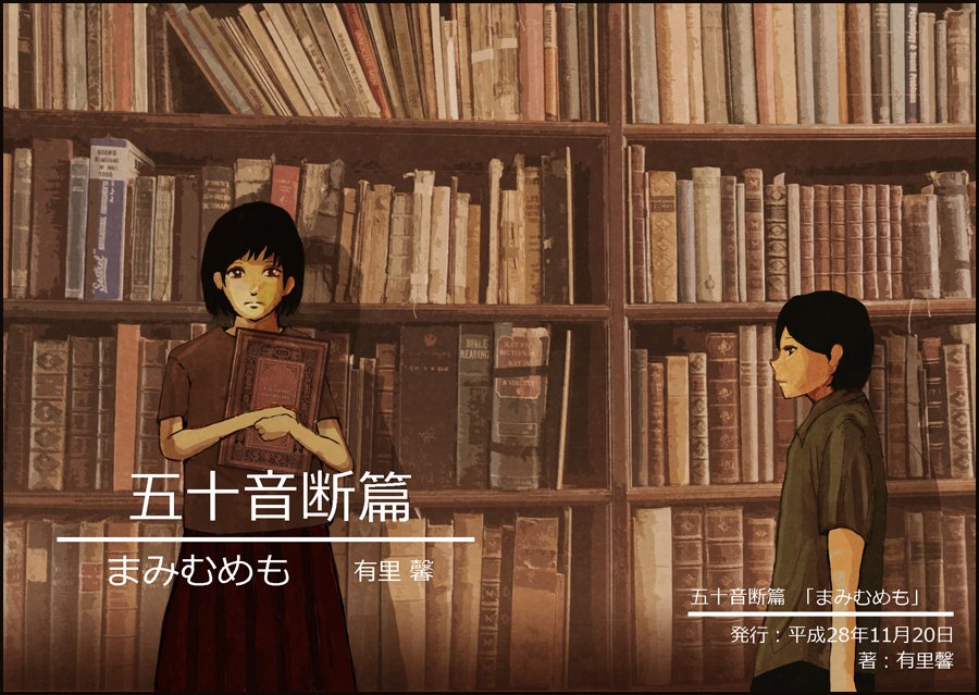 五十音断篇折本「まみむめも」をネットプリント登録してきました。 中身は、note公開の五十音断篇「まみむめも」の5篇、そして書き下ろしの1篇を加えた全6篇収録の掌編集となります。 セブンイレブンのマルチコピー機から印刷できます。 プリント予約番号は「88259396」。 印刷期限は11/26まで。 用紙はA4。 カラー、白黒選択式(表紙のみカラーです)。 カラーは60円で印刷できます。重厚な表紙ですのでカラーを全力オススメします! 興味が在りましたら、どうぞよろしくお願い致します。 ***** 表紙絵は咲さまにご寄稿いただきました。 2号連続でゲスト様表紙で発行できるとは……人の縁とご厚意に感謝するばかりです。本当にありがとうございます。 自分が掌編を書くのは、数分で読み切れて、ライトに、小説に触れて欲しい、という自身の理念もあって、今回は140字の括りのなかで掌編を作成して折本にした経緯があります。 なので、内容もさらっと読める口当たりの軽いものを書いているつもりです。 とくに、世代的ににあまり読書を趣味とする人がいないのもあって、読む楽しさを身近で共有できないことがあったり、書いているものに近くにいる人に興味を持ってもらえなかったりで、なんかもうちょっと本に対して身構えなくてもいいんじゃないかなぁ、というお節介心がありますw 本というと「読書感想文で無理やり読まされるもの」という認識が強い人もいますし。 とはいえ、私の世代はケータイ小説が最盛期だったころも経過してますし、ゲームなどでかなりの量のテキストを読んでいる世代でもあるんですよね。ついったーだって、文字の羅列だし。 文字を読む、と言うことに関しては、機会が少ないわけでもないのかなぁ、と。 一方、小説について。 私自身の考えとしては、小説は文字を読み話を追うだけではなく、言葉遊びだとか、謎かけとか、暗喩などの言葉回しに小説らしい面白さがある気がしてます。 そういうことをついったーと同じ140字に収めつつ、時間泥棒且つ頭を使う「気軽ではない小説」をもうちょっと「楽に読める小説」に出来たらなぁ、というふんわりとした目標のもと。 なので、ごく単純に「あ」から始まった『五十音断篇』は、そういう折本です。 ですので、こうやって表紙を描いて頂けると、また別の「読んでくれるかもしれない誰か」へと、もう少し手を伸ばしていけるのかなぁ、なんて思っております。 咲さまの絵は、というか絵の中に描かれる人はどこか物言いたげで、メッセージ性がある絵を描かれる芯の重い絵だと感じています。 そんな素敵な絵を纏わせていただいた「まみむめも」、是非様々な方に手に取って頂けたら嬉しいです。どうぞよろしくお願い致します。 ※なお、今回は咲さまのご意向により装画クレジットがありません。あらかじめご了承くださいませ。 PR |
